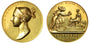 Coronation of Victoria 1838, the official Gold Medal by Benedetto Pistrucci, bust left, VICTORIA D.G. BRITANNIARUM REGINA F.D. rev Britannia, Hibernia and Scotia offer the crown to Victoria, ERIMUS TIBI NOBILE REGNUM, in exergue, INAUGURATA DIE JUNII XXVIII MDCCCXXXVIII, 36mm, in bespoke leather case, 30.55g (BHM 1801; Eimer 1315). About extremely fine, slabbed and graded by NGC as MS61.