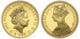 Elizabeth II (1952 - 2022), gold proof Two-Ounces of Two Hundred Pounds, 2021, struck in 999.9 Fine Gold from the Great Engravers series commemorating the Gothic Crown coin by William Wyon, crowned head right, JC initials below for designer Jody Clark, Latin legend and border surrounding, ELIZABETH II. D. G. REG. F. D. 200 POUNDS. 2021, rev. Based on the obverse of the original coin - an ornate portrait of Queen Victoria with incuse on inner border surrounding legend, 'Victoria dei gratia britanniar reg f d' all in gothic script, plain edge 62.42g (S. GE34A). Brilliant proof state with very small toning spot on the lower cheek of the Queen, in original Royal Mint box, outer packaging and certificate of authenticity.