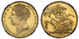 George IV (1820-30), gold Two Pounds, 1823, bare head left, J.B.M. below truncation for engraver Jean Baptiste Merlen, abbreviated Latin legend and toothed border surrounding, GEORGIUS IIII D:G: BRITANNIAR: REX F:D:, rev. St. George and dragon right, W.W.P. below broken lance on ground line for then Mint Master William Wellesley Pole, date in exergue, initials B.P. to upper right of exergue for engraver Benedetto Pistrucci, edge engraved in raised letters, DECUS ET TUTAMEN. ANNO REGNI IV. (Schneider 635; Hill T6; MCE 470; S.3798). Toned with an underlying brilliance, very well preserved, graded and slabbed by NGC as MS64.