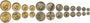 The Proof sets of 1911 were issued with gold coins in either long or short format, the long set comprised of twelve coins; a Gold Five Pounds down to the Maundy Penny with a mintage of 2812 sets; the short set starting and the Sovereign and down, making it a ten-coin set. There was also a "budget" third set with the proof silver coins only from Halfcrown to Maundy Penny. Usually the original Royal Mint red case with gold block crest and lettering, cream silk inlay and blue velvet cushioning accompanies these sets, as we will see below in the pricing scheme for the Royal mint.