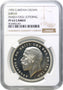 George V (1910-36), silver proof Crown, 1935, Silver Jubilee Issue, bare head left with raised BM on truncation for Bertram Mackennal, legend and toothed border surrounding, GEORGIVS V. DG. BRITT: OMN: REX. FD. IND: IMP:,rev. stylised St George and dragon left, raised PM initials to lower right for engraver Percy Metcalfe, denomination and date above, edge inscribed in raised letters, DECUS ET TUTAMEN. ANNO REGNI XXV. (Bull 3655 R; ESC 378; L&S 46; S.4050).Brilliant, some light hairlines, graded by NGC as PF63 Cameo.