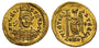 Leo I (A.D. 457-474), Gold Solidus. Mint of Rome, A.D. 462/6. D N LEO PE-RPET AVG, pearl-diademed, helmeted and cuirassed bust facing, slightly inclined to the right, a spear across shoulder and holding a shield, rev. VICTORI-A AVGGG, Victory standing left, holding a long jewelled cross, a star on right, CONOB in exergue, 4.46g., 6h (RIC 605; Depeyrot 93/1). Lustrous, extremely fine.