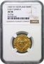 James II of Scotland (1437-60), gold Demy of Nine Shillings, first coinage (1437-51), type IVa, upright lion within double lozenge with fleur de lis at apexes and halfway between, beaded circles and abbreviated Latin legends surrounding with annulets as colon stops, initial mark crown, King's name misspelt, IACBVS: DEI: GRACIA: REX: SC, rev. central design about 70 degrees out of orientation with surrounding legend, pellet at centre of saltire cross, fleur de lis either side, fleured double tressure of six arcs surrounding, large quatrefoils with large pellet centres around connected by wire line circle, beaded circles and legends surrounding, initial mark crown with annulets as colon stops, +SALVm FAC POPVLVm TVVm: DnI:+, weight 3.27g (Burns 2, fig 498; cf.SCBI Stewartby 72:566; S.5217). Toned with some traces of red wax in reverse legend, has been slabbed and graded by NGC as AU58.