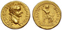 Tiberius (A.D. 14-37), gold Aureus, Lugdunum, TI CAESAR DIVI AVG F AVGVSTVS, laureate head facing right, rev. PONTIF MAXIM, female figure (Livia?) seated right, holding a sceptre and a branch, 7.77g, 5h (RIC I, 29). Good very fine.
