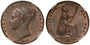 Victoria (1837-1901),copper Farthing, 1841, young filleted head left, w.w. incuse on truncation for engraver William Wyon, date below, legend and toothed border surrounding, VICTORIA DEI GRATIA, A's of last word with weak bars,rev.Britannia seated right with trident and shield, legend and toothed border surrounding, BRITANNIAR: REG: FID: DEF: emblems in exergue (Peck 1560; S.3950).Toned with a little underlying lustre, has been slabbed and graded by NGC as MS64BN.